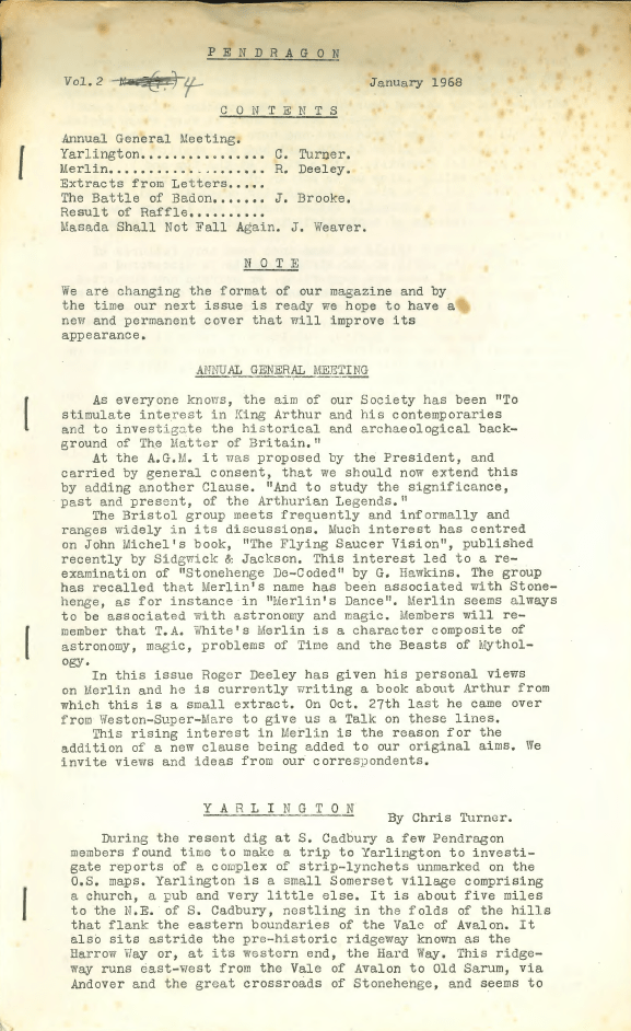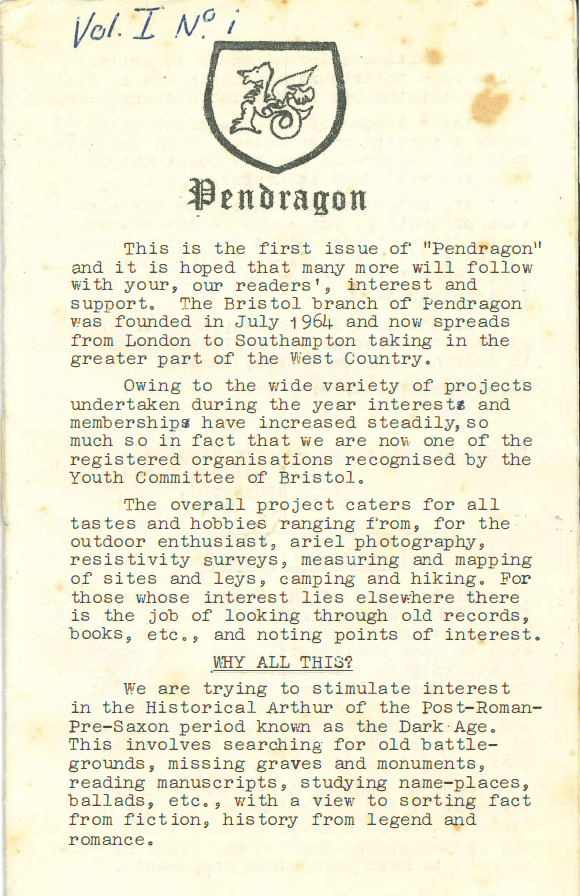 Thanks to the kind permission of the editor, all issues of the Pendragon Journal are now available below as fully searchable PDF files. I have also included some non-journal publications published by the society which provide information about its history. have been unable to find a few issues, so if anyone has copies I would delighted to hear from you! They are offered here freely, in the same spirit of enthusiasm and accessibility with which they were originally produced. If any author objects to their work being made available in this way please contact me.