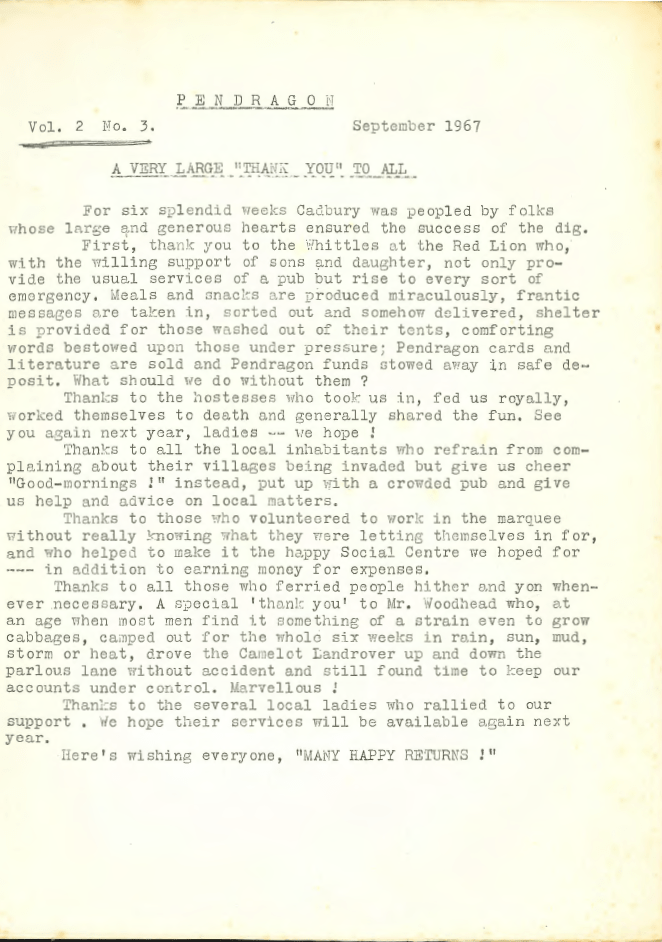 It was during this period that the Society launched its journal, which provided regular updates on the excavation and invited members to get involved. After the Cadbury dig concluded in 1970, some members participated in another dig at Llanmelin, and their findings were shared in the journal.